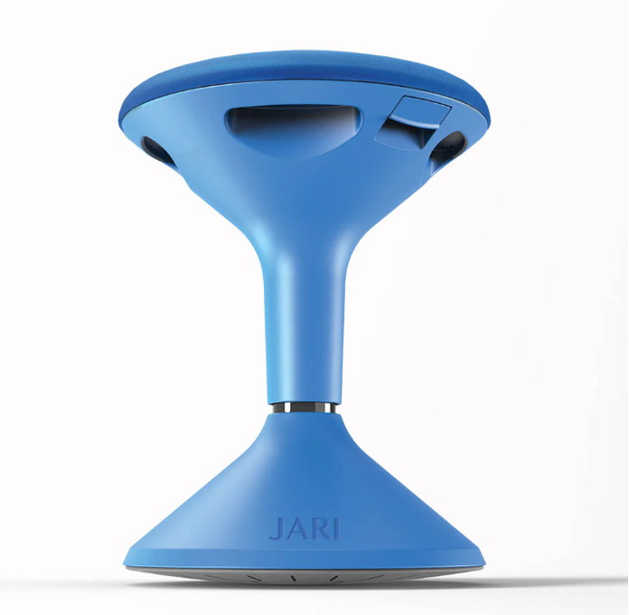 It is impossible to actually sit on a Jari Activstool, no lying back, no slouching and definitely no sitting still. With a rotating convex base Jari forms one leg of a stable tripod, your own legs provide the other two parts. That means you are constantly flexing, adjusting and moving; the ideal way to stay focused and concentrate.